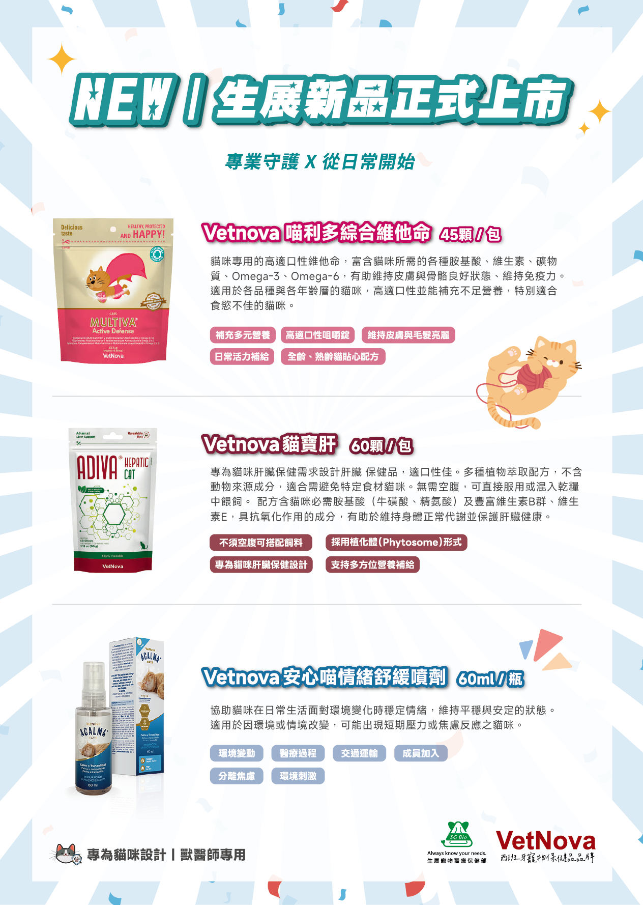 ⭐ Vetnova 貓咪多方位保健系列 新品上市 ⭐打造日常營養 × 肝...